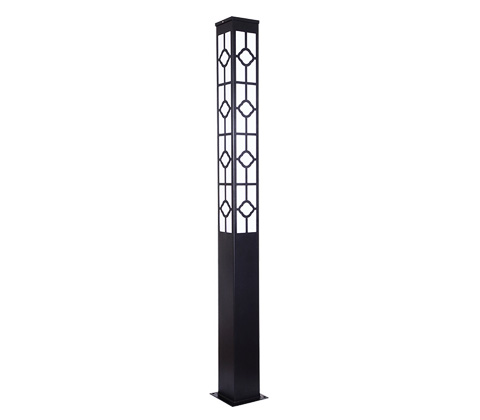 中式園林好色先生网站入口柱采用方柱形設計,燈體2/3為內透光效果,透光花紋采用簡約花朵造型分5層四周相同割花工藝,內配白色亞克力燈罩,燈體整體顏色采用通體黑色,安裝效果更加體現中式風格及穩重的感覺,此款好色先生网站入口柱廣泛適用於各類城市社區公園、住宅小區、商務園區、工業園區等場所的園林景觀亮化照明。