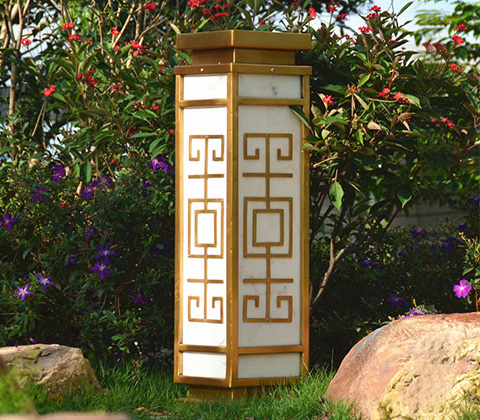 新中式不鏽鋼鍍銅類仿雲石矮柱頭燈